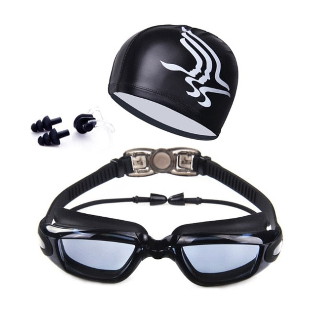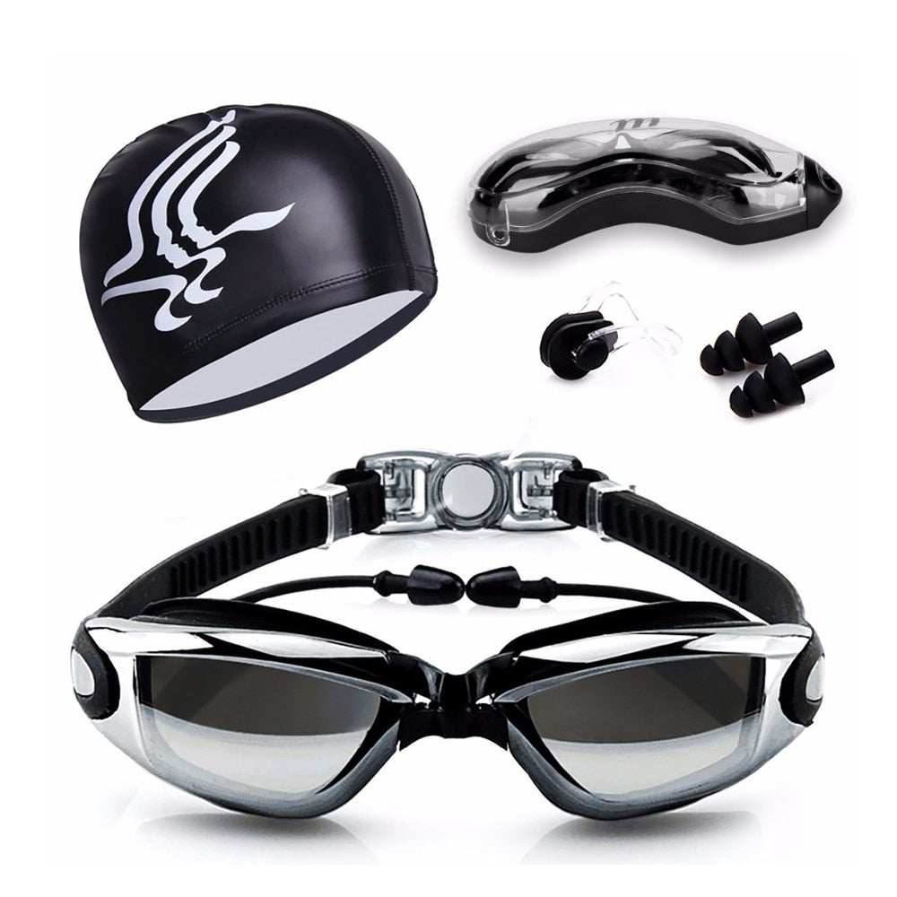 Package: 1*Swim Goggles +1*hat +1*ear plug +1*nose clip